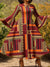 Abstract Geometric Patterns Print Ruffle Sleeve Maxi Dress