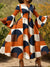 Abstract Geometry Print Ruffle Sleeve Maxi Dress