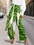 Women's Fashionable Retro Geometric Stripes Print High Rise Asymmetrical Button Layered Wide Leg Jeans