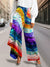 Women's Fashionable Retro Stripes Print High Rise Asymmetrical Button Layered Wide Leg Jeans