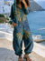 Women's Retro Abstract Floral Pattern Print Long-sleeved Denim Cotton Hooded Jumpsuit