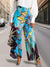 Women's Retro Patterns Print High Rise Asymmetrical Button Layered Wide Leg Jeans