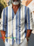 Colorful Retro Stripes Art Print Casual Long-sleeved Double-breasted Stand-up Collar Shirt