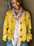 Fashion Color Block Dot Art Print Buttoned Cardigan Sweater