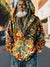 Men's Abstract Art Geometric Color Block Art Print Leaf Zip-up Hoodie Sweatshirt