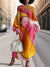 Women's Fashionable Shiny Striped Gradient Colorful Art Print Silhouette Round Neck Heathered Knitted Maxi Dress