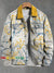 Colorblock Plant Art Print Casual Denim Jacket