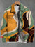 Fashion Colorblock Geometric Art Print Casual Denim Jacket