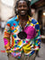 Colorful Abstract Texture Art Print Casual Long-sleeved Collared Shirt