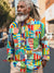 Fashion Color Block Geometric Art Print 100% Cotton Long Sleeve Shirt