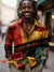 Vintage African Art Abstract Geometry Vintage Stripe Print 100% Cotton Long Sleeve Shirt