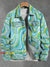 Colorblock Geometric Art Print Casual Denim Jacket