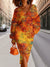 Colorful Abstract Art Prints V Neck Sweater Midi Dress