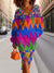Colorful Abstract Ethnic Texture Geometric Art Print V Neck Sweater Midi Dress