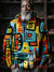 Colorful Retro Geometric Stripes Art Print Knit Pullover Hooded Sweater