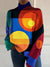 Colorful Geometry Art Print Knit Turtleneck Pullover Sweater