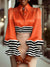 Fashion Abstract Art Print Elegant Puff Sleeve Long-Sleeved Collared Blouse