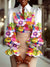 Fashion Abstract Flower Art Print Elegant Puff Sleeve Long-Sleeved Collared Blouse