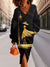 Fashion Abstract Geometric Art Print V Neck Sweater Midi Dress