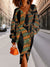 Fashion Abstract Geometric Art Print V Neck Sweater Midi Dress