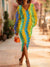 Fashion Colorblock Geometric Art Print V Neck Sweater Midi Dress