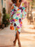 Fashion Colorblock Geometric Art Print V Neck Sweater Midi Dress