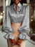 Fashion Colorful It's My Birthday Art Prints Elegant Puff Sleeve Long-sleeved Collared Blouse