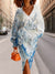 Fashion Flowers Art Print V Neck Sweater Midi Dress