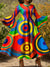 Fashionable Retro Geometric Print Ruffle Sleeve Maxi Dress