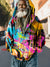 Men's Retro Abstract Art Print Leaf Zip-up Hoodie Sweatshirt