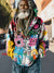 Men's Retro Abstract Art Print Leaf Zip-up Hoodie Sweatshirt
