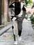 Men's S Vintage Abstract Geometric Art Print Zipper Long Sleeve Long Pants Two-piece Set