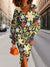 Retro Abstract Christmas Pattern Art Print V Neck Sweater Midi Dress