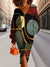 Retro Abstract Color Block Texture Art Print V Neck Sweater Midi Dress