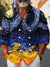 Retro Abstract Texture Art Print Casual Long-sleeved Double-breasted Stand-up Collar Shirt