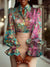 Retro Abstract Texture Art Prints Elegant Puff Sleeve Long-sleeved Collared Blouse