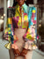 Women's Colorful It's My Birthday Art Print Asymmetrical Slant Collar Shirt