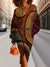 Retro Abstract Textured Geometric Art Print V Neck Sweater Midi Dress