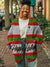 Retro Christmas Stripe Art Print Buttoned Cardigan Sweater