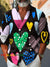 Retro Colored Abstract Heart Art Print Casual Long-sleeved Double-breasted Stand-up Collar Shirt