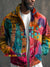 Retro Colorful Abstract Art Print Casual Denim Jacket