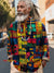Retro Colorful Geometric Art Print 100% Cotton Long Sleeve Shirt