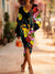 Retro Floral Art Print V Neck Sweater Midi Dress