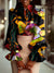 Retro Floral Art Prints Elegant Puff Sleeve Long-sleeved Collared Blouse