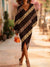 Retro Stripes Art Prints V Neck Sweater Midi Dress