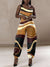 Women's Abstract Geometry Print Pattern Sleeveless Strap Denim Jumpsuit