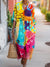 Women's Colorful Abstract Art Print Cotton Lapel Button-down Shirt Dress