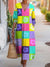 Women's Colorful Abstract Floral Lattice Art Print Pocket Cotton Dress
