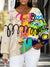 Women's Colorful Abstract Graffiti Art Print Casual Cotton Shirt