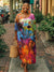Women's Colorful Abstract Hand Drawn Geometric Art Print Long Sleeve Round Neck Dress